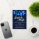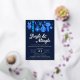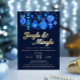 This Christmas party invitation design features hand painted watercolor vintage style Christmas bauble ornaments in blue and turquoise on a dark navy blue background with gold foil text. The text reads 'jingle and mingle' and you can customise all of the event details. On the back of the invitation is a pattern of the same vintage christmas ornaments on dark blue. See the whole matching collection.