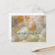 Jingle shells postcard for those who celebrate Christmas in the tropics. Seashell photography of real jingle shells in pretty, translucent colours of orange, white, grey and yellow on the front with text that mimics the "jingle bells" song. Teal green text on the front and a custom message and signature on the back. Also include a mailing address - or delete the sample text before purchase.