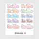 Vinyl stickers that say "Jiu Jitsu" in a script font and a variety of colours, good for schedules and calendars.