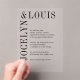Modern wedding acrylic invitation featuring a minimalist black and white design with your names in a large font along the left side and top. This design is simple enough for a formal wedding yet makes a bold statement.
