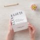 Modern all in one wedding invitation featuring a minimalist black and white design with your names in a large font along the left side and top. This design is simple enough for a formal wedding yet makes a bold statement.