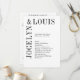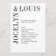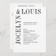 Modern wedding program featuring a minimalist black and white design with your names in a large font along the left side and top. This design is simple enough for a formal wedding yet makes a bold statement.