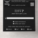 Modern all in one wedding invitation featuring a minimalist black design with your names in a large font along the left side and top. Use the template to generate a QR code or you may remove it in the design editing tool. This design is simple enough for a formal wedding yet makes a bold statement.