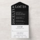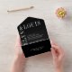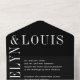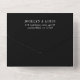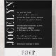 Modern all in one wedding invitation featuring a minimalist black design with your names in a large font along the left side and top. This design is simple enough for a formal wedding yet makes a bold statement.
