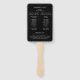 Modern wedding program hand fan featuring a minimalist black design with your names in a large font along the left side and top. This design is simple enough for a formal wedding yet makes a bold statement.