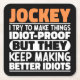 Funny Jockey Sayings "Jockey I Try To Make Things Idiot Proof But They Keep Making Better Idiots". Grab this Funny Jockey design as a funny gifts for an awesome mum, dad or friend.