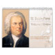 Among the many composers calendars, this work of art is a Johann Sebastian Bach calendar. Twelve different painters have created twelve works of art on the theme of the musician from Thuringia, Johann Sebastian Bach. A thirteenth painter felt the twelve portraits and painted them all in one style, in the same sharpness, and a truly admirable style. The twelve portraits on twelve monthly pages share their space with twelve quotes that celebrities in the past said to honor Johann Sebastian Bach. The quotes on the Bach calendar are in German and English. It is a bilingual Bach calendar.