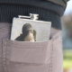 The flask itself is fine. It’s a cheap flask, obviously bought in bulk, however am prepared to overlook that. Given that it is a personalized item, I would have liked to have seen gift boxing instead of the generic packaging. Terrible printing, and/or quality. It’s a cheap, tacky vinyl. It is not cut straight and is also applied in a way that it is overhanging the bottom, causing the glue to catch on items and it will eventually roll and tear, damaging the wrap.