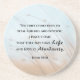 Inspirational quote scripture round coaster depicts a simple nature photograph of a field with blades of wheat against a blue sky. It features Bible Verse John 10:10, "The thief comes only to steal, and kill, and destroy; I have come that they may have life, and have it abundantly." Photograph by Aaron Burden.