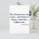 This greeting card features the John 10:27 KJV bible scripture in a unique print with black letters light blue outline plus bible citation from the King James version with the words "With God You Can!" on the back. Made with high quality, full colour printing on a 3.5" x 5" (portrait) or 5" x 3.5" (landscape) matte paper made and printed in the USA.