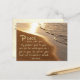 Inspirational quote postcard depicts a beautiful scene of the beach in the evening and features Bible Verse John 14:27, in the words of Jesus, "Peace I leave with you; my peace I give you. I do not give to you as the world gives. Do not let your hearts be troubled and do not be afraid."~