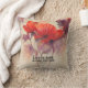 Beautiful Christian throw pillow with inspirational quote scripture depicts a simple, elegant watercolor floral art design with two red flowers and a purple abstract background. It features an encouraging Bible Verse John 15:12, in the words of Jesus, "Love one another as I have loved you."