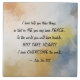 Inspirational quote scripture custom ceramic tile depicts an abstract blue, yellow, white and peach background. It features Bible Verse John 16:33, "I have told you these things, so that in ME you may have PEACE. In this world you will have trouble. BUT TAKE HEART! I have OVERCOME the world."
