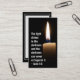 Inspirational scripture Business Card depicts a black background with a glowing candle. It features Bible Verse John 1:5 "The light shines in the darkness, and the darkness can never extinguish it."