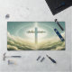 LOVE this desk mat! It's large! It fits across my desk. No need for a small mouse pad now! Color and print are excellent. Quality seems to be excellent too. Delivery was about 3 days sooner than expected. I think this is one of my favorite Zazzle products! Excellent. The color is vibrant and true to what I expected.