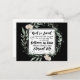 Postcard with inspirational quote Scripture depicts a floral watercolor wreath with simple white roses and greenery on a black background. It features the beloved Christian Bible Verse John 3:16, "God so loved the world that he gave his one and only Son, so whoever believes in Him shall not perish but have eternal life." The greeting, prayer can be personalised or deleted for a hand written message.