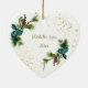 Inspirational scripture personalised Christmas ceramic ornament depicts simple watercolor evergreen branches adorned with holly leaves, red berries and gold splashes. It features Bible Verse John 3:16, "For God so Loved the world, that he gave his only Son, that whoever believes in Him should not perish but have eternal life." Customised the back with name and date or the details of your choice.*