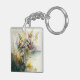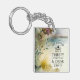 Christian inspirational quote scripture keychain depicts a beautiful watercolor painting of a lake framed with artistic flowers and foliage. It features a portion of Bible Verse John 7:37 in the words of Jesus, "Let anyone who is thirsty come to me and drink."