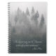 A personal sized, spiral bound notebook that features the photo image of a forest wilderness enveloped by fog along with inspiring words of a quote by naturalist John Muir that reads, "The clearest way into the Universe is through a forest wilderness." Use as a journal or to keep important notes.