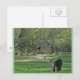 A black bear wanders close to the John Oliver Cabin in Cade's Cove. Spring time dogwood blossoms surround the cabin. Photo is digitally manipulated.