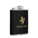 The flask itself is fine. It’s a cheap flask, obviously bought in bulk, however am prepared to overlook that. Given that it is a personalized item, I would have liked to have seen gift boxing instead of the generic packaging. Terrible printing, and/or quality. It’s a cheap, tacky vinyl. It is not cut straight and is also applied in a way that it is overhanging the bottom, causing the glue to catch on items and it will eventually roll and tear, damaging the wrap.