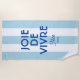 Relax in style with our 'Joie De Vivre' Nice Blue Cabana Stripe French Beach Towel. Featuring a sophisticated blue cabana stripe design, this plush beach towel is perfect for adding a touch of French elegance to your seaside or poolside experience. Personalise it with your custom year and destination to create a unique keepsake that celebrates your favourite French memories. This custom beach towel combines functionality with French-inspired flair, making every beach day a luxurious escape. Matching accessories available in Joie De Vivre France Collection.