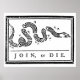 Join, or Die is a famous political cartoon created by Benjamin Franklin and first published in his Pennsylvania Gazette on May 9, 1754. The cartoon appeared along with Franklin's editorial about the "disunited state" of the colonies, and helped make his point about the importance of colonial unity. During that era, there was a superstition that a snake which had been cut into pieces would come back to life if the pieces were put together before sunset. (Wikipedia)