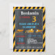 A printable construction birthday invitation with a bulldozer and a truck. Perfect for outdoor birthday party for Boys in any age.