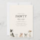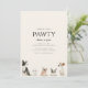 Invite your guests to a pawsitively adorable birthday party with this dog-themed invitation card. The bottom of the invite has playfully adorned with cute dog illustrations, setting a fun and festive tone. In the centre, party details are beautifully displayed, ensuring all the important information is clear and easy to read. The back of the card features a charming, simple pattern of dog paws, adding a delightful finishing touch to this whimsical and joyful invitation. This design captures the spirit of your celebration and invites everyone to join in the canine-themed fun.