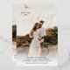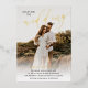Simple and beautiful double sided two in one photo wedding invitation with your photo covering the wedding invite card. Join us for the wedding of is written at the top of the photo, with wedding in a beautiful calligraphy script printed in gold foil. Your names in gold foil too. On the other side, add another photo and additional wedding information your guests will need along with your QR code.