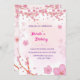 This is a beautifully designed birthday invitation with a floral theme, featuring cherry blossom illustrations. The layout includes the following details.