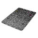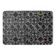 An intricate pattern of grey crosses and circles that intertwine on a black background with just a hint of colour.