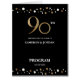 Personalise this large gold and black confetti joint 90th birthday party program design. Celebrate and include the party itinerary for your guests and also have a photo and a special message from the birthday celebrants. The special message is a great opportunity to thank guests and start the nintieth party on right.