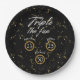 Three Times the Celebration with Our Chic Joint Birthday paper plates! Featuring a classy black background with sparkling golden confetti, this platen is designed to impress. "Triple the Fun" in an elegant script font graces the front, while the celebrants' ages are highlighted in a sophisticated circle, with their names artfully curved above in a modern serif font. The back continues the luxurious theme, offering ample space for all your event details. Customise every detail to match your celebration. Elevate your party plates—order today and set the stage for an unforgettable event!