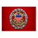 Introducing project “Military Insignia”, featuring top quality military heraldry designs. Here you will find designer apparel, accessories, custom postage and gifts decorated with insignia of the Joint Chiefs of Staff (JCS). The Joint Chiefs of Staff (JCS) is a body of senior uniformed leaders in the United States Department of Defence who advise the Secretary of Defence, the Homeland Security Council, the National Security Council and the President on military matters. The composition of the Joint Chiefs of Staff is defined by statute and consists of the Chairman of the Joint Chiefs of Staff (CJCS), Vice Chairman of the Joint Chiefs of Staff (VCJCS), and the Military Service Chiefs from the Army, Navy, Air Force and the Marine Corps, all appointed by the President following Senate confirmation. Each of the individual Military Service Chiefs, outside of their Joint Chiefs of Staff obligations, works directly for the Secretary of the Military Department concerned, i.e. Secretary of the Army, Secretary of the Navy, and the Secretary of the Air Force. Following the Goldwater-Nichols Act in 1986 the Joint Chiefs of Staff do not have operational command authority, neither individually nor collectively, as the chain of command goes from the President to the Secretary of Defence, and from the Secretary of Defence to the Commanders of the Combatant Commands. Goldwater-Nichols also created the office of Vice Chairman, and the Chairman is now designated as the principal military adviser to the Secretary of Defence, the Homeland Security Council, the National Security Council and to the President. The Joint Staff (JS) is a headquarters staff in the Pentagon, composed of personnel from all the four services, that assists the Chairman and the Vice Chairman in discharging their responsibilities and is managed by the Director of the Joint Staff (DJS) who is a Lieutenant General or Vice Admiral. Joint Chiefs of Staff Identification Badge, presented here, consists of an oval silver metal wreath of laurel, symbolic of achievement, courage, and victory. The four unsheathed swords refer to the armed might of the Army, Navy, Air Force, and Marine Corps and their combined constant vigilance and readiness in the defence of the United States.