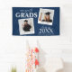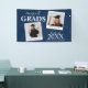Modern double graduation party banner which features 2 photos of the graduate's. The banner has template text that reads 'CONGRATS GRADS, THEIR NAMES, YEAR OF GRADUATION, and THEIR SCHOOL OR COLLEGE NAME'. All font styles and colours can be changed by clicking on the customise further link after personalising.