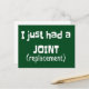 I just had a joint replacement is prefect for your friend or relative who just had surgery to replace a joint and has or needs a sense of humour. If they can laugh or are in need of a good laugh this is the gift for them.