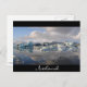 Postcard of the glacier lake Jokulsarlon where icebergs collapsing from Vatnajokull glacier float around with reflection of the clouds in it in Iceland in panorama.