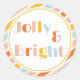 This Christmas sticker features the message "Jolly and Bright" in a colourful retro modern stylised font and has a matching stripe pattern background. Perfect for sticking anywhere that needs a little holiday cheer. Use as an envelope seal for your Christmas cards to add some festive charm. This Christmas sticker is part of our Jolly and Bright Christmas collection. For matching cards, wrapping paper, and more, please visit the collection on this page.