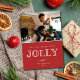 A modern Christmas greeting postcard in a red 'Tis the season to be jolly with your family photo design. Customise the front side of card with your photo, names and the year. This card reverses to a red and green Christmas plaid on the back.