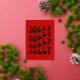 Jolly Jolly Jolly Jolly Christmas Card: a retro design, with a wavy vintage typography in gold foil and a classic red background.