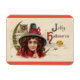 Cute, vintage picture of a little girl witch, with an owl, is featured on this Halloween magnet. With message, "Jolly Halloween", this makes a great Halloween decoration or a cute, little gift!