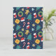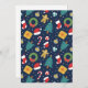 Spread holiday cheer with our **Jolly Jumble Holiday Card**! This flat card features a lively design of Christmas-themed graphics, including wreaths, presents, ornaments, gingerbread men, Christmas trees, stockings, Santa hats, and candy canes, all set against a rich dark blue background. Perfect for sending warm wishes and festive joy to your loved ones this season.