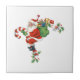 A Jolly Retro Santa is carrying a sack of Christmas toys on his back while riding a red and white striped candy cane. Image from a Vintage Christmas Wrapping Paper Sample Book, cira 1954.