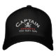 A fun sailing captains hat with a pirate flag jolly roger skull easily change the colour of the thread to coordinate with your hat colour.