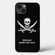 Easily personalise this fun kids modern Jolly Roger pirate skull graphic and crossed swords flag on a black background. You can easily change the background colour from a range of over 200 colours .