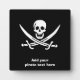 Easily personalise this fun kids modern Jolly Roger pirate skull graphic and crossed swords flag on a black background. You can easily change the background colour from a range of over 200 colours .