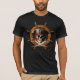 Aargh! Jolly Roger Pirate skull, eye patch, pirate hat, and crossed swords over an antique wooden ship's wheel.