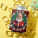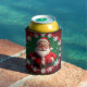 Jolly Santa Claus Surrounded by Snowflakes Can Cooler