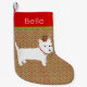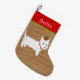Deck the halls with this adorable personalised dog stocking. A lighthearted design for anyone who loves west highland terriers. A cute cartoon art of a westy wearing reindeer antlers with a green and red chevron background. Original vector art by Night Owl's Menagerie, 2016.
